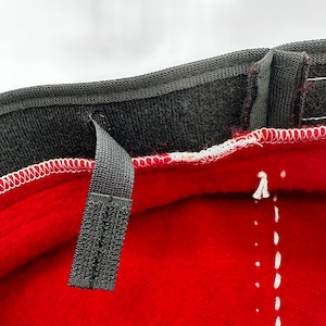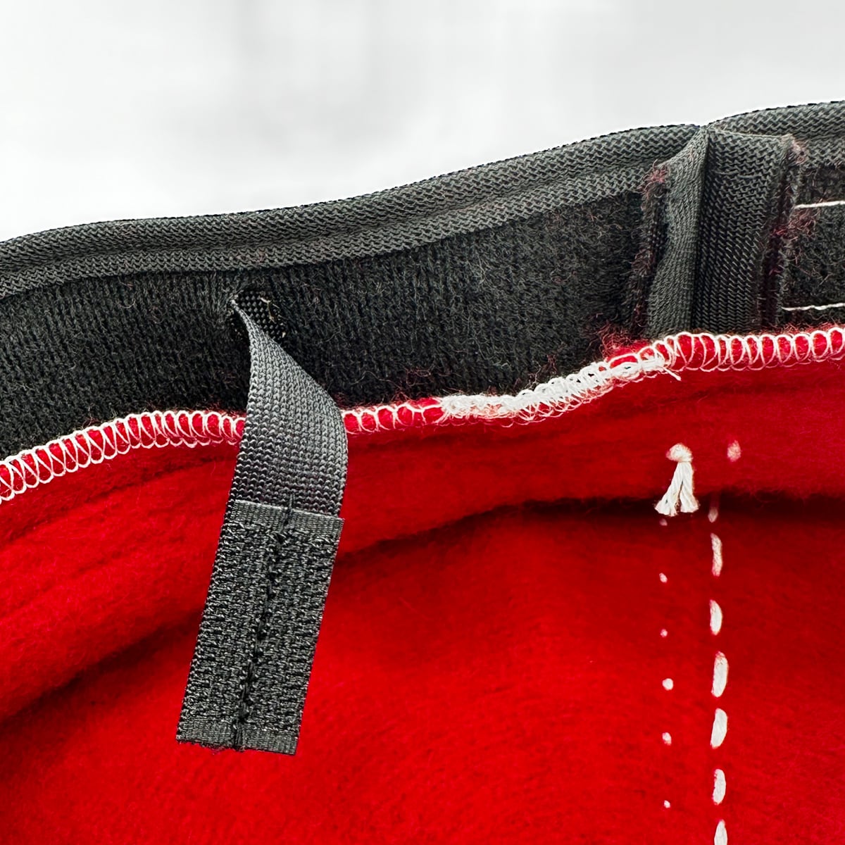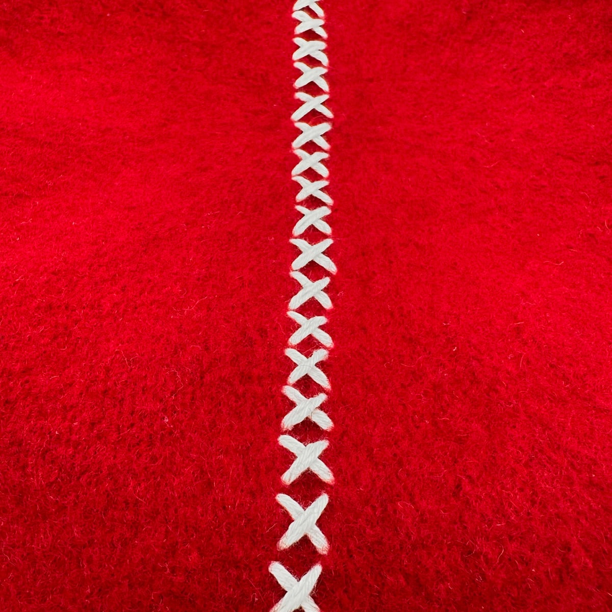 落ち着いた少し暗めの赤に白いステッチが映えます。