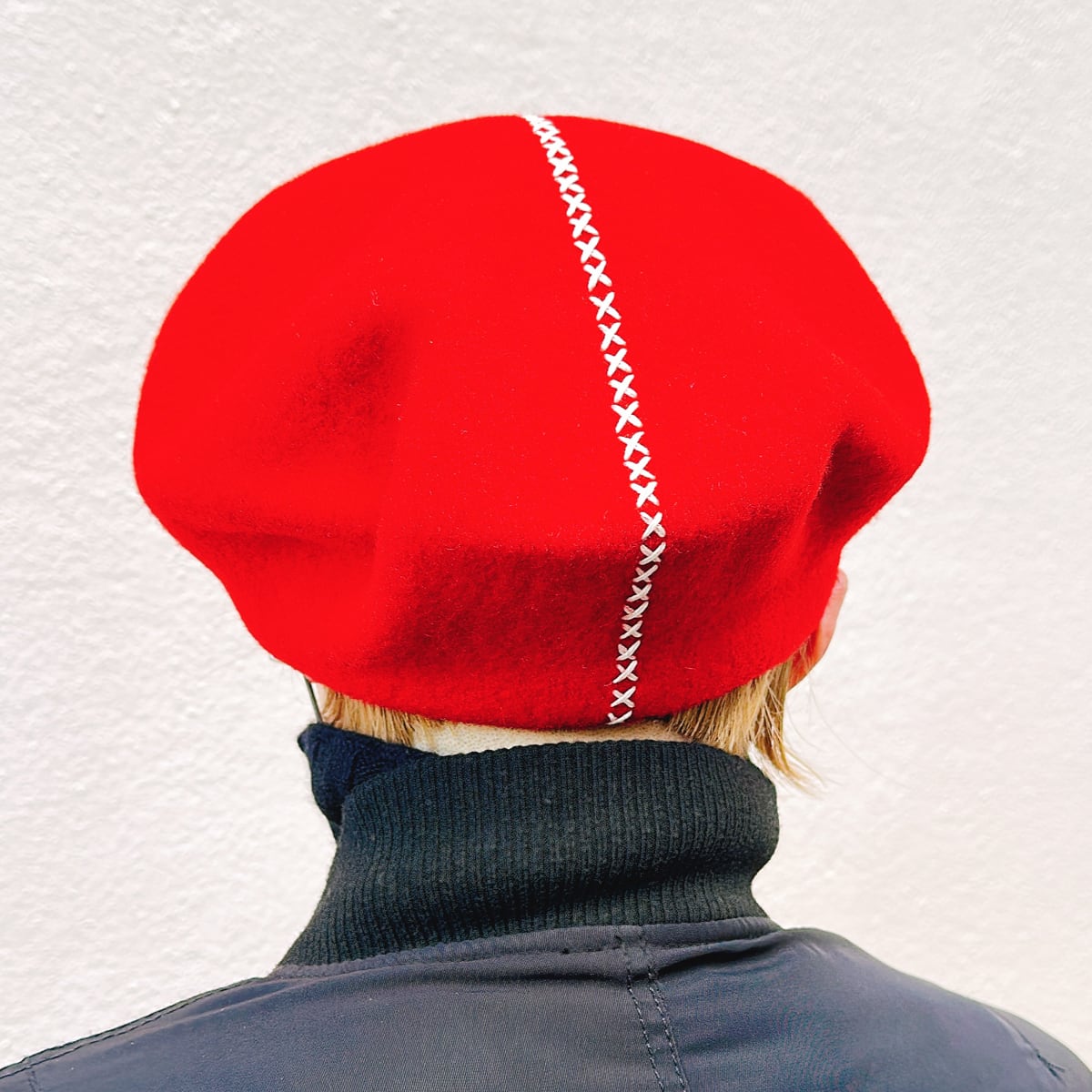 Wool beret / red: ウール ベレー レッド 帽子 ハンドステッチ
