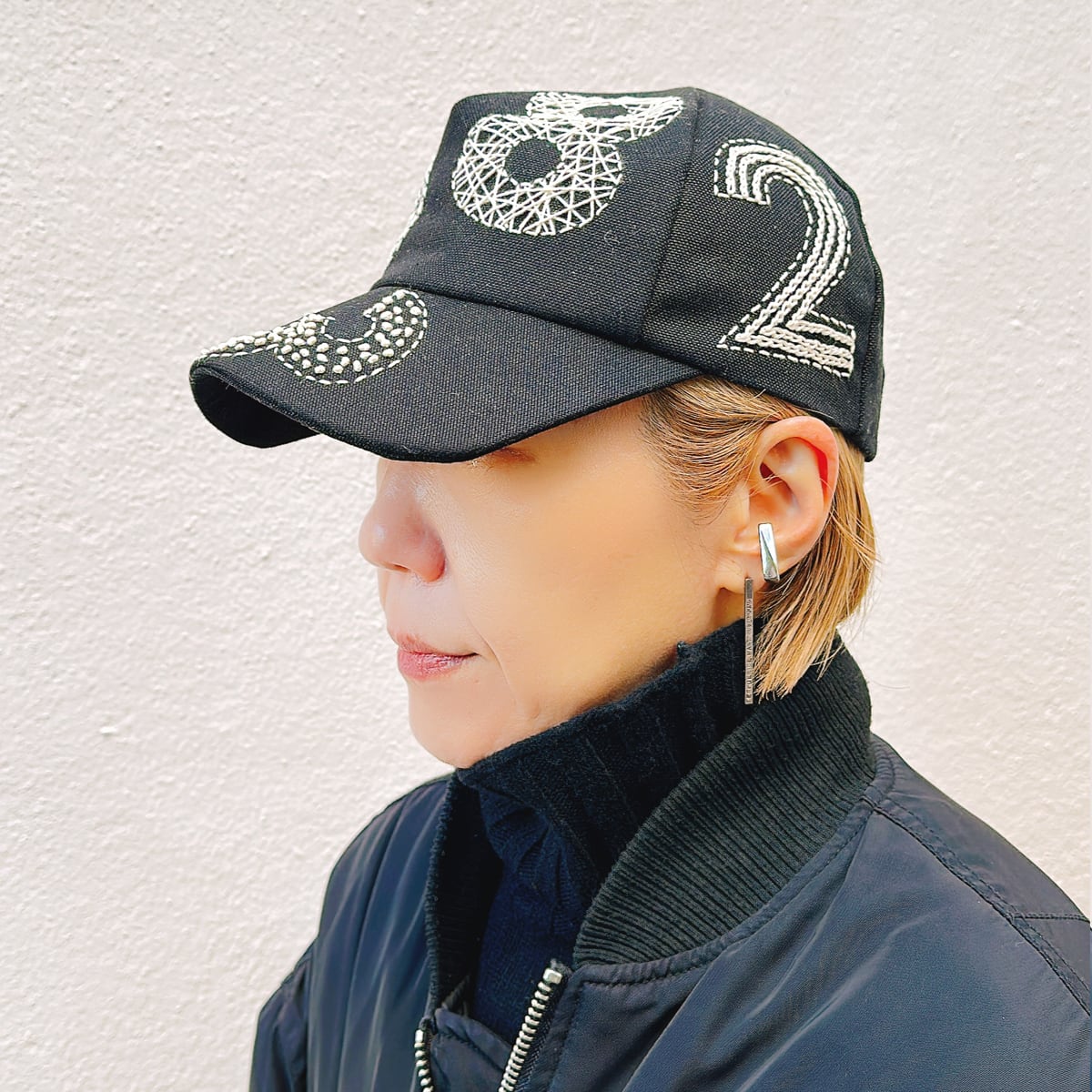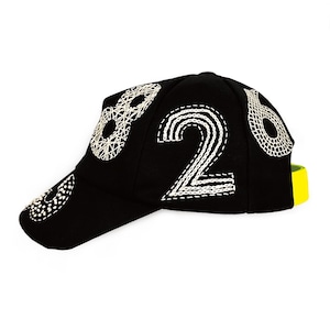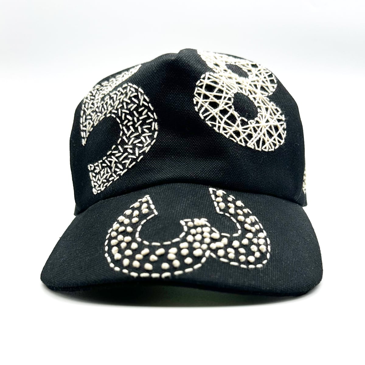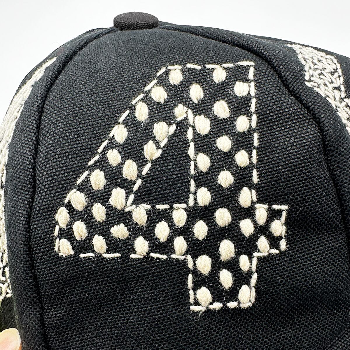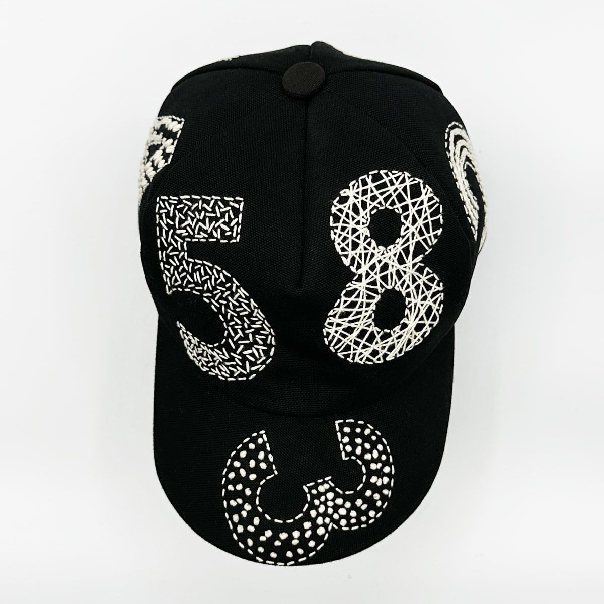 【受注生産/Build to order】 Number Stitch cap : ナンバーハンドステッチ キャップ ブラック×ホワイト 帽子 キャップ